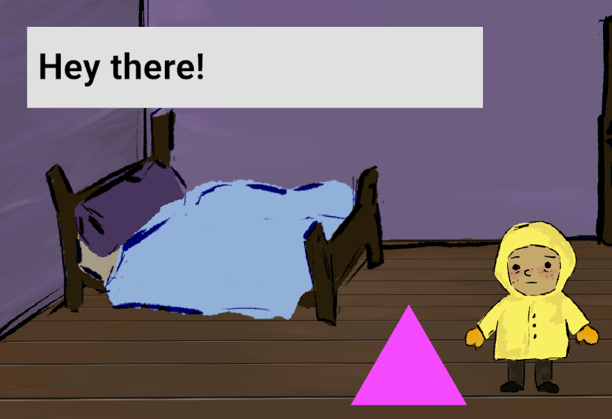 For the dialogue boxes, most of the play testers liked having the dialogue be displayed at the top of the screen to avoid obstructing the scene. But I got a suggestion of having the dialogue be displayed depending on where the character speaking is, like how I had it for the triangle in the second scene. I really liked this idea and will keep it in mind for designing the look for the boxes.