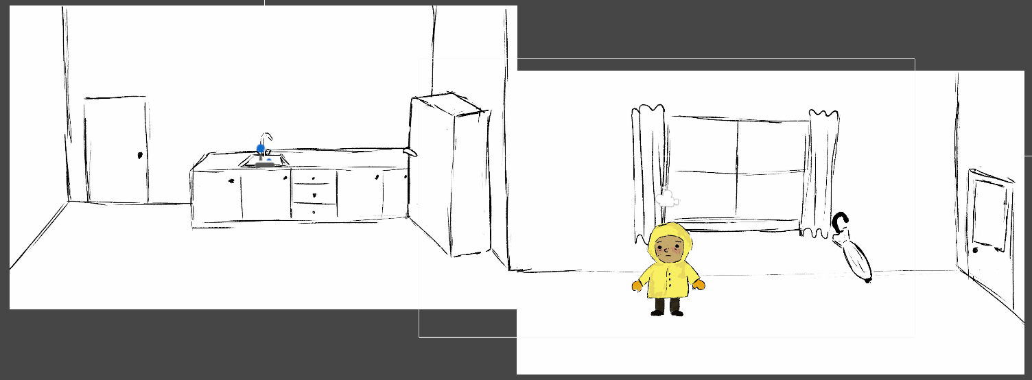This beginning section will be what we’re using for the core mechanics demo for our class. It will show off what the movement will feel like and how the player will interact with the world's environment, going between different rooms of the house and an improved dialogue layout to bring life to the NPCs.