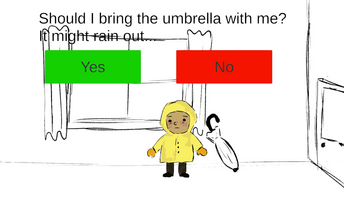Our vertical slice has begun to develop smoothly; we were able to create a simple environment with our core mechanics. We chose to focus on the interaction mechanic as this is essential to progress through out game. The player will interact with things in the house to learn more about the character. They also interact with an umbrella and make a choice whether to take it with them before leaving the house.